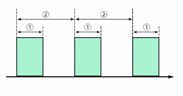 ①:シャッターオープン時間,②:インターバル時間( Intervalometer )